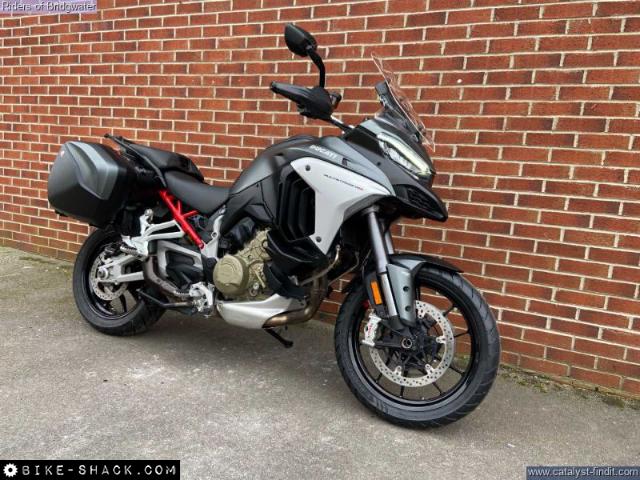 Great example of the ever-popular V4S Multistrada which was supplied by Riders Motorcycles to its 1 previous owner from new. Excellent service histiry and well cared for. This V4S Multistrada if the Travel & Radar spec, therefore benefits from heated seats & grips, centre stand, panniers along with Radar guided cruise control, bling spot detection, cornering ABS with Brembo calipers, traction control, rider modes, TFT dash with connectivity + more...!