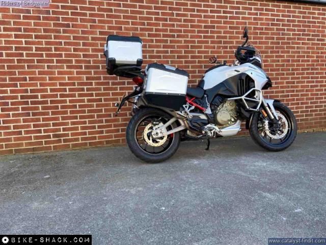 Fantastic example of the ever popular Multistrada V4S model in white with full ali luggage. This bike has been very well maintained + benefits from heated seats + grips along with centre stand + rad guards + engine bars!