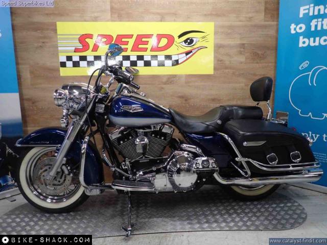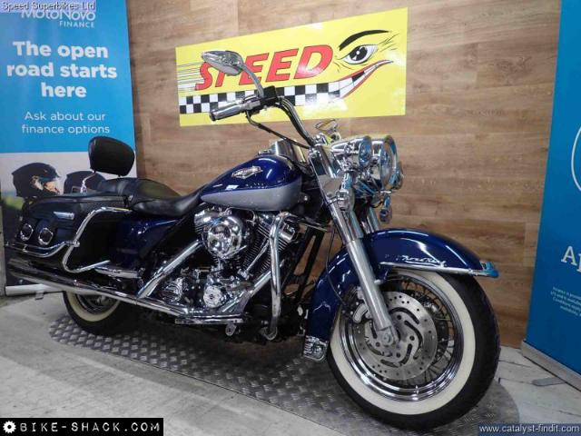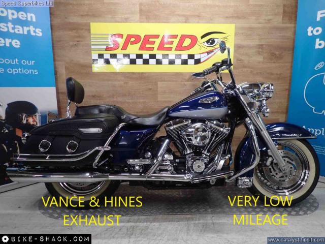 2000 Harley Davidson Road King 1450, only 12110 miles on the clock and 5 UK owners, the bike is in great condition and comes fitted with a Vance & Hines exhaust and custom air filter, comes with a CARFAX salvage report HPI clear. For some, the Harley Davidson FLHR Road King is the best Harley of all, mixing the 50s style of the Fat Boy with the versatility and comfort of the Glides thanks to its twin shock chassis and built in panniers and screen. Impressively plush and manageable. With its weight carried low the Road King is refreshingly stable and easy to steer, even at low speed. The ride is smooth and comfortable, too. These bikes will have a safety check with limited warranty. We may not be able to offer finance on these bikes due to age. Delivery in mainland UK available. Part exchange welcome.