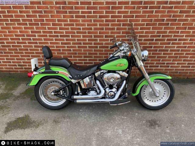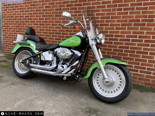 Very Rare Fatboy in Two tone Metalic Green complete with Crusher Exhaust, Detachable Screen, footboards with Heel Toe Gear Shift.Sissy bar in black, ony 2 owners from new, with a good service history through Riders. Had a new ECU fitted in 2024 hence low mileage showing 2989 on display, actual total Mileage around 17500 miles.