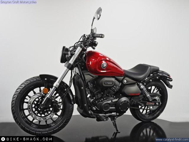 Keeway RK V125 C is a modern take on the classic V-twin cruiser, combining timeless design with up-to-date components for the contemporary rider. Featuring a new 125cc V-twin engine with 6 valves, liquid cooling, and electronic fuel injection, the RK V125 C delivers peak figures of 10.2kW of power and 14.4N·m of torque, more than enough to push the 164kg (dry) motorcycle. Unlike other motorcycles of its size, the RK V125 C comes equipped with inverted front forks and front and rear disc brakes, ensuring optimal performance and handling. Thick 120/80-17 and 140/70-17 tires adorn the front and back, respectively, adding to the low and wide cruiser look. The 2-into-1 exhaust provides a clean view of the polished engine case while emitting the distinctive rumble of a V-twin. The chain final drive ensures optimal comfort and minimal maintenance. The electronics of the RK V125 C are also thoroughly modernized, featuring a thin, round headlight that projects the Keeway logo on the DRL, producing a 3D effect when combined with the LED low- and high-beam lamps. The instrument cluster is circular and features a white-on-black digital display highlighted by a radial tachometer around the speedometer. The tank of the RK V125 C is wide in proportions and comes in solid red or black finishes. Holding a massive 19 liters of fuel, it gives the RK V125 C class-leading range with just one fill-up, perfect for those never-ending road trips. The low 690mm seat height ensures comfort for riders of all sizes. Overall, the Keeway RK V125 C is a stylish and reliable motorcycle that is perfect for those looking for a modern take on the classic cruiser. With its sleek design, up-to-date components, and class-leading range, the RK V125 C is the perfect bike for those looking to hit the open road.