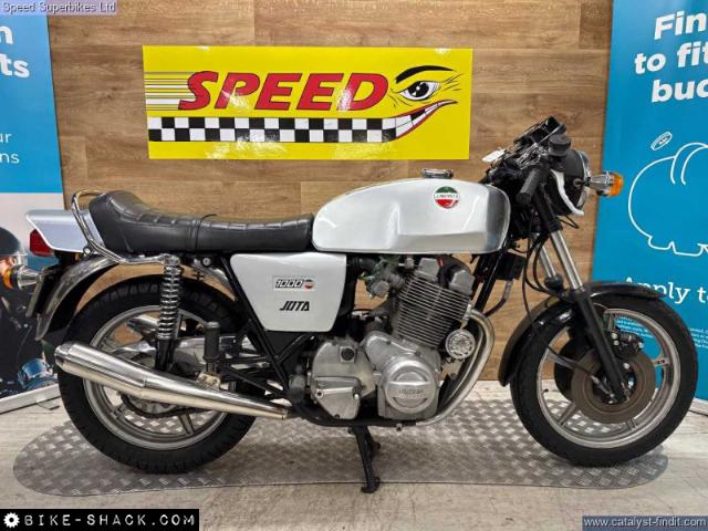 1977 Laverda Jota 1000, UK bike, 32129 miles on the clock and 9 owners, the bike is in good condition. The bike has been unused for a number of years so will require recommissioning before being ridden on the road. In 1973 Laverda entered the emerging superbike class with a new 981cc inline three cylinder engine, which it considered to be an ideal compromise between the lighter weight but lower output of a parallel twin and the increased weight, width but higher output of an inline four. The handsome Italian triple also featured chain driven dual overhead camshafts and a 180 degree flat plane crankshaft which gave this engine its unique exhaust note and pulsating character. This brings us to the sublime Jota 1000 here. It’s arguably the most iconic of all models produced during the Laverda family's heyday, if you are looking for a true iconic Italian classic superbike, this could be the bike for you. These bikes will have a safety check with limited warranty. We may not be able to offer finance on these bikes due to age. Delivery in mainland UK available. Part exchange welcome. Customers must satisfy themselves as to the provenance, condition, age, completeness and originality prior to purchase.