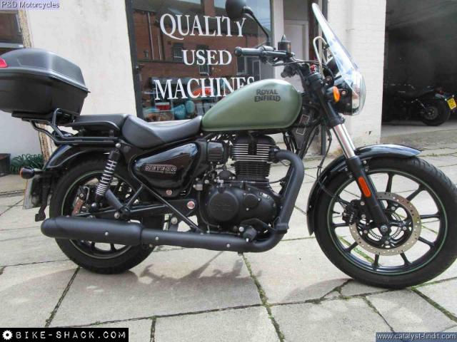JUST ARRIVED THIS LOVELY ROYAL ENFIELD 350 METEOR IN FIREBALL GREEN. THIS IS A VERY NICE LOW MILEAGE EXAMPLE WITH SOME NICE EXTRAS FITTED: SCREEN,SUMPSHIED,REAR CARRIER & KAPPA TOP BOX. COMES WITH ALL BOOKS & KEYS. USUAL DEALER FACILITIES APPLY.