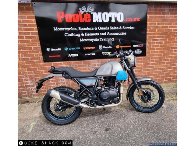 Royal Enfield Scram 411. Ready... Set... Scram!ROYAL ENFIEL SCRAM 411. READY... SET... SCRAM!Today's world is full of opportunities. And obstacles too. It demands constant switching between modes. Work and play, night and day, rough and smooth, stop and go, fast and slow. The scram 411 is built for this state of flux. Royal Enfield's high-altitude adventurer DNA has evolved from decades of expeditions and thousands of miles of rides across the most challenging terrains in the world. The scram 411 is derived from this very DNA. It is a multi-purpose tool optimised for agility, an ally that's always ready for whatever life has in store. his is no cosmetic crossover or pumped-up street bike – this is a brand new subspecies. Scram mode is about navigating the urban game of snakes and ladders. The scram's high- altitude proven 410 engine makes for fewer gear changes and easy manoeuvring through the urban maze so that you can go with the flow. 19" front and 17" rear wheels help this machine take on anything that is thrown its way, while a low 795mm seat height keeps the rider comfortable on longer rides. Modern life demands a constant switching between modes. Wire spoked wheels and dual-purpose tires ensure a sure-footed grip and effortless agility across the tarmac, rough roads and dirt tracks. Long travel suspension and high ground clearance ensure an easy ride over tricky terrain – because the scram 411 is built to handle whatever life throws at you. The scram 411 was created by mixing genuine adventurer capability with scrambler playfulness and accessibility. Details like the urban badge plate, an offset speedo, a scrambler seat and five high-energy colourways tell you that this is no ordinary motorcycle. This is the scram 411.