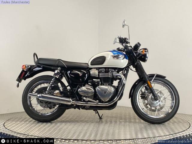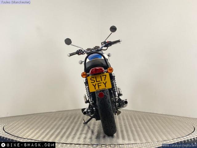 TRIUMPH BONNEVILLE T100 ON A 17 REG IN FUSHION BLUE & WHITE WITH ONLY 6075 MILES INCLUDING 7 X SERVICE STAMPS IN BOOK. THIS WAS PREVIOUSLY SOLD BY YOULES MOTORCYCLES.