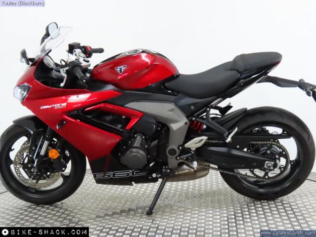 Triumph Daytona 660 in red with 3084 miles on the clock.One of the best handling sport bikes on the market. Comes with full Triumph service history, Datatag, tool kit, 2 keys and V5.