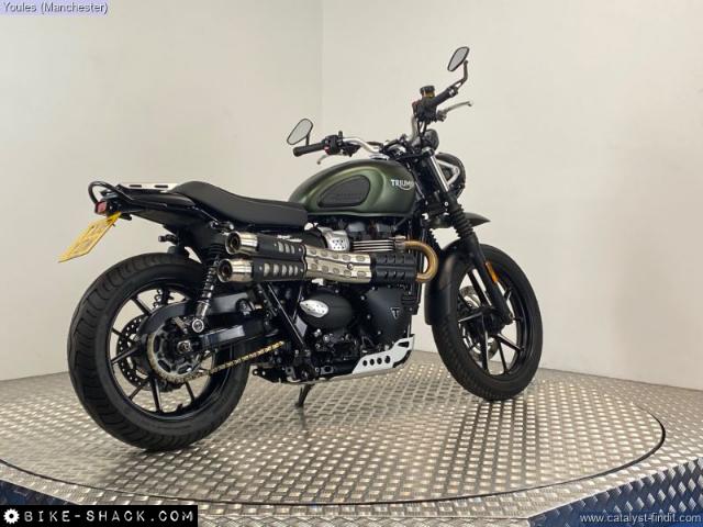 TRIUMPH STREET SCRAMBLER 900 IN KHAKI GREEN ON A 18 REG WITH 4366 MILES.