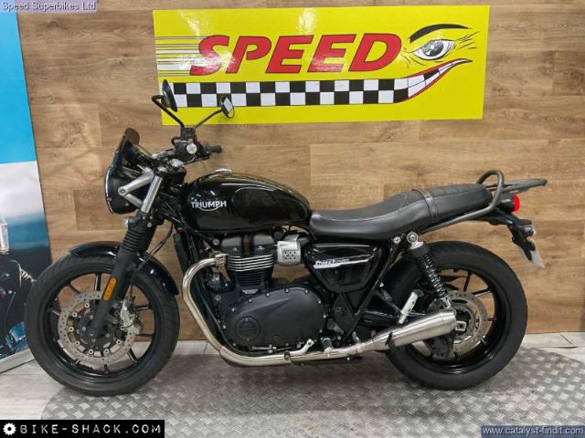TRIUMPH STREET TWIN 900, 2019, 12362 miles, 3 owners, service book with 6 Triumph dealer stamps (will have an oil and filter service), handbook, MOT until 05/03/27, spare key, Tec bike pipes + standard pipes, rear rack, fly screen and headlight protector. Retail bikes: Competitive finance & great part exchange allowances. Call our team for an easy, no obligation quote. All our retail bikes come with a full PDI, valet & 3 months total cover warranty (additional £75). Credit & debits cards accepted. Delivery in mainland UK from only £125 + VAT. Compulsory admin fee of £100 for 3rd party finance.
