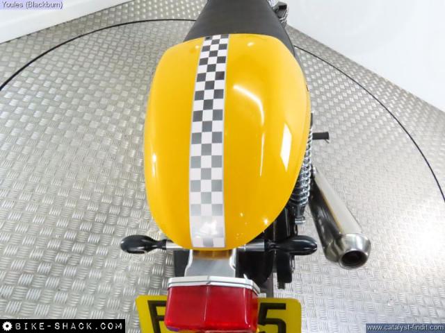 The ignition switch has been relocated to the side of the frame, fitted with a tail tidy with a small rear mudguard with a Lucas tail light. We have the std front and rear mudguards.