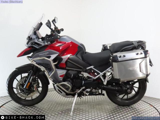 Triumph Tiger 1200 GT Explorer finished in red with only 1077 miles on the clock. This is the flag ship Tiger model with 30ltr fuel tank, radar blind spot detection, heated seats- rider and pillion, 7" TFT dash, heated grips, cruise control, 5 rider modes, fog lights, full engine bar protection, sump guard and Triumph Expedition Panniers. All books, full Triumph service history, 1 key fob, 1 passive keys, Datatag. Triumph Warranty until 12/12/2027.