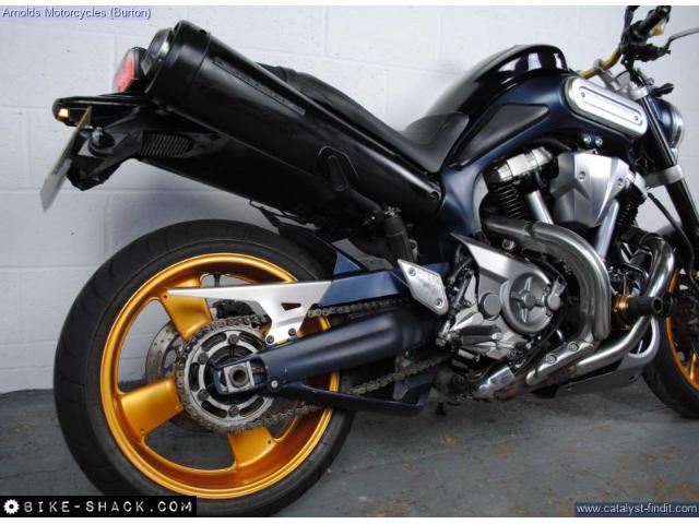 The originator of the Master of Torque range and what a machine it is. Fitted with a Mammoth 1670cc V twin engine delivers buckets of torque, 111 ft lb to be precise it really does pull your arms off. Paired with a R1 derived brakes and suspension it hustles along the twisty roads superbly too. A real head turner and has a bark like no other as this particular bike has twin Dominator end cans to extenuate this epic noise. Come and see this rare machine in store and take in its huge presence and stand out from the crowd for all the right reasons.
